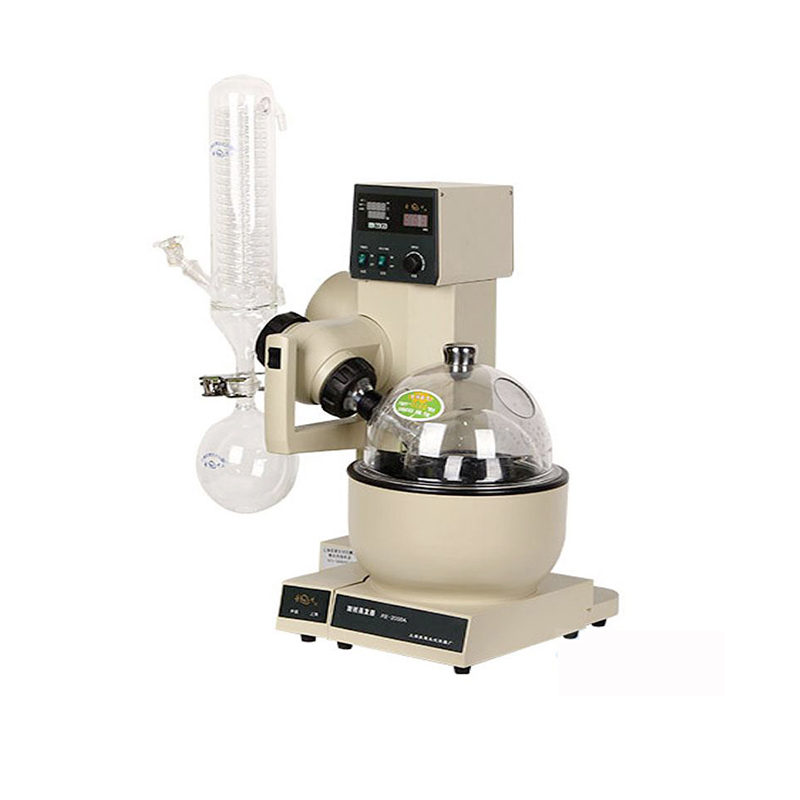 1.使用时:应先打开冷却水(如果自来水冷却效果不好物料会被真空抽走、就需要配低温循环装置),然后开始减压,调节你需要的加热温度、一般在0.095mpa左右真空度情况下设置物料沸点的一半+5C°、再开动电机转动蒸馏烧瓶;