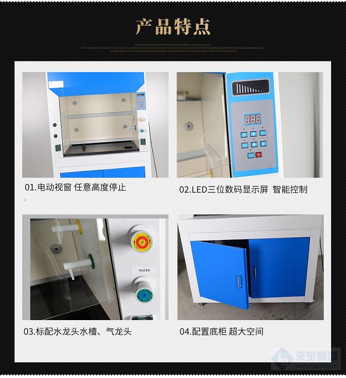 10、通风柜内置交流后向离心风机,风量大、噪音小,方便客户安装。
