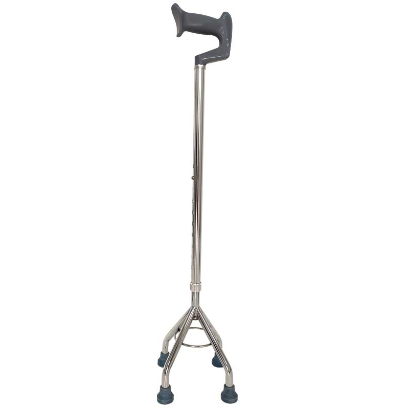 手杖由一个或多个支脚、一个手柄(手柄套)、连接支脚和手柄的手柄杆和拐杖凳板组成。无源产品。用于行动障碍患者的辅助行走或站立,进行康复训练。
