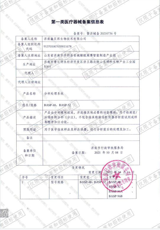 分杯处理系统开发技术参数