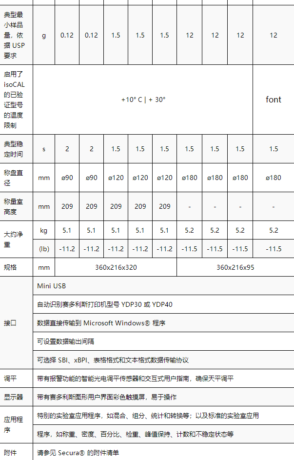 全新的Secura 系列电子天平符合 USP 最小样品量要求, 确保了操作过程的一律可靠性。