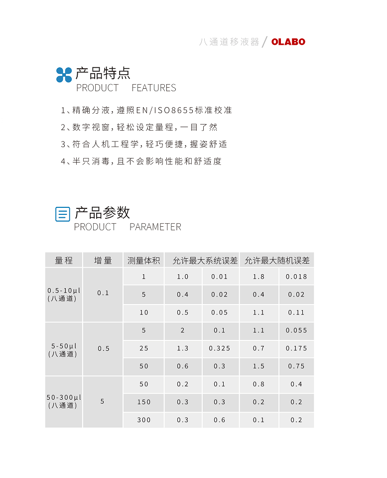 欧莱博OLABO半只消毒8道可调移液器50-300μl
